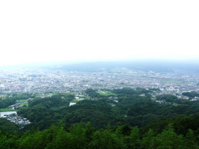 主郭から太宰府市街を望む。中央の平坦地が大宰府政庁跡。