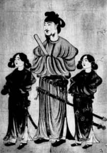 用明天皇の皇子(おうじ)で、母が宮殿内の馬小屋の前に来た時に生まれたことから、厩戸(うまやどの)皇子と呼ばれる聖徳太子。