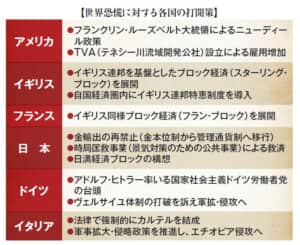 各地に植民地を有する「持てる国」であるイギリスやフランスは、外国からの輸入品に高い関税をかけて、他国の商品を締め出す政策で不況を乗り切ろうとした。本国や植民地など関係の深い国々だけで経済圏をつくる「ブロック経済」である。