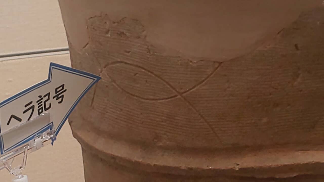 今城塚古代歴史館で展示されている、工房のへら記号。
