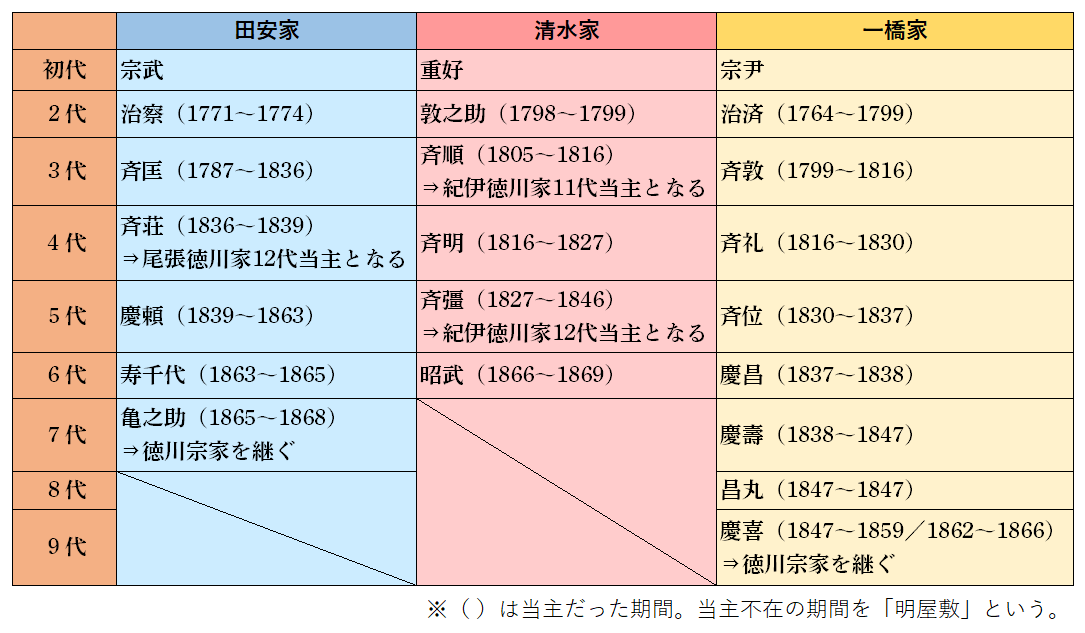 8代将軍・徳川吉宗は、将軍家を安定させるために独自に「御三卿」をつくった。田安家、一橋家、清水家の三家だ。そこには将軍家の身内でありながら、その上吉宗の血統を維持するという考え方があった。