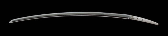 来国光は来国俊に続く来派の名手で、14世紀前半に京都で活躍した刀工。太刀・短刀とも作品が多く現存している。この太刀は直刃調の作風で、小板目の地鉄が国光の作品の中でも特によく冴えている。東京国立博物館蔵、出典/ColBase