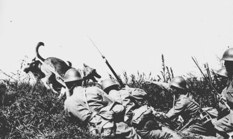 旧日本軍と軍用犬。昭和13年(1938)に撮影されたもの。