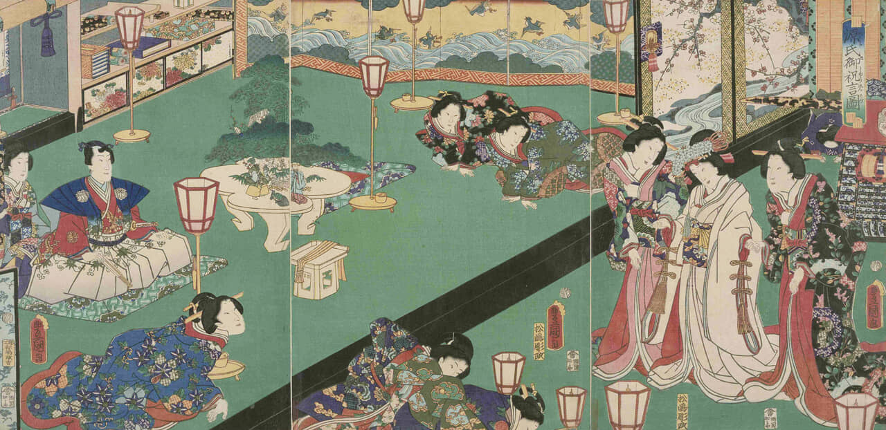 歌川豊国が描いた源氏絵で、和宮ご降嫁を扱ったものと考えられる。