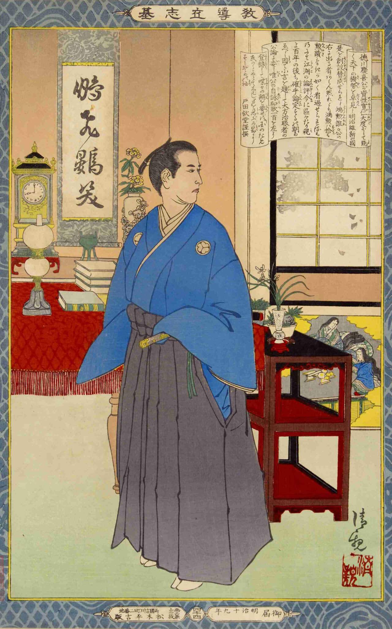 そして、水戸徳川家が、第2代藩主の徳川光圀(みつくに)以来、尊王精神にあふれる家であったことを考えれば、慶喜はごく自然に尊王精神を植えつけられて育ったといえる。事実、慶喜の全生涯を通して、天皇絶対主義ともいうべき尊王精神の持ち主として終始した。