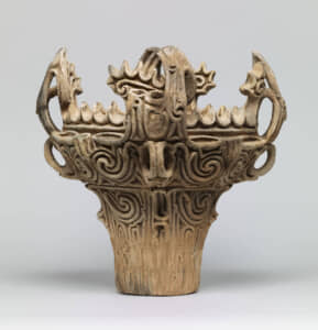 晩期には、「本当に縄文時代に作られたの?」と疑うほど、独創的なデザインの漆塗り土器が現れます。