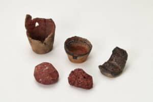 鉄石英・赤色顔料入り土器・漆が付着した土器(出典:JOMON ARCHIVES)