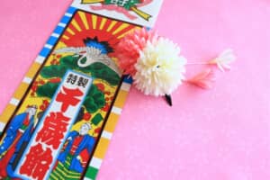 じつは、千歳飴の長さには意味があるんですよ。千歳飴の長さと太さにはルールがあって、長さは1メートル、太さは直径1.5センチ以内と決められています。細くて長い千歳飴には、こどもたちに「長く生きてほしい」という想いが込められているのです。また、千歳飴の名前も特徴的です。千歳飴の「千歳」には、「千年」つまり、こどもたちが千年まで長生きして、幸せな人生を歩むようにという意味があるのです。