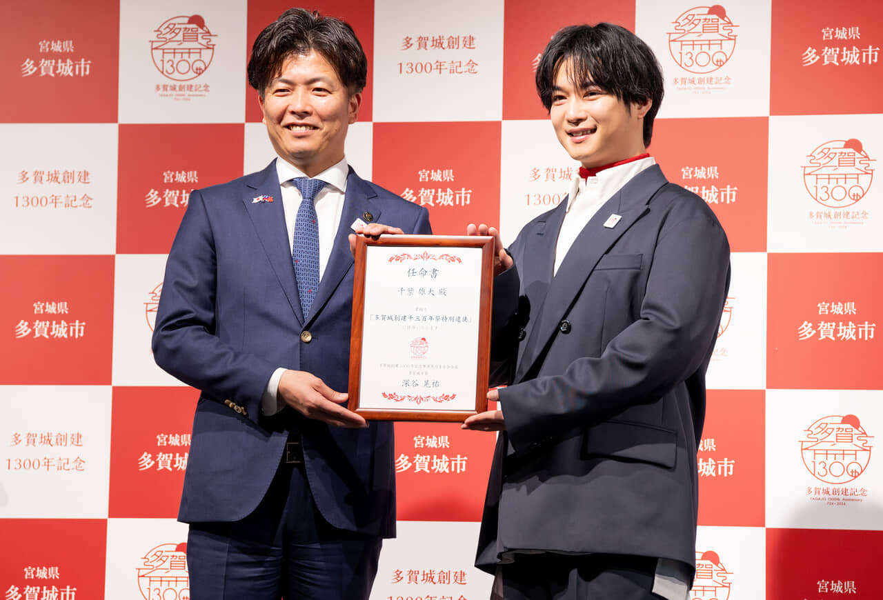 千葉さんは「多賀城創建千三百年祭特別遣使」に任命され、「このようなお役目を頂けて本当に有難く思っています。上京したときは出身地を聞かれたら仙台と答えていましたが、今は胸を張って多賀城と答えています」とコメントした。千葉さんは令和元年から多賀城市のPRのための「悠久浪漫大使」を務めているが、令和6年はこの特別遣使と兼任となる。