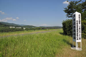 大分県大分市にある戸次川古戦場跡。仙石秀久とともに戦った武将、長宗我部信親の墓が立つ。