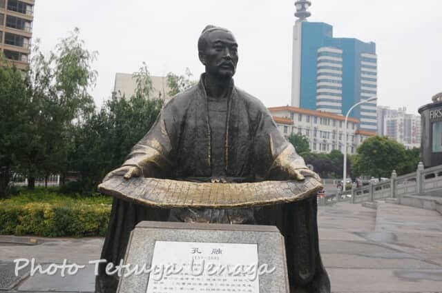 孔融の像。許昌の市街に建安七子の像があり、そのうちの一体。撮影/上永哲矢