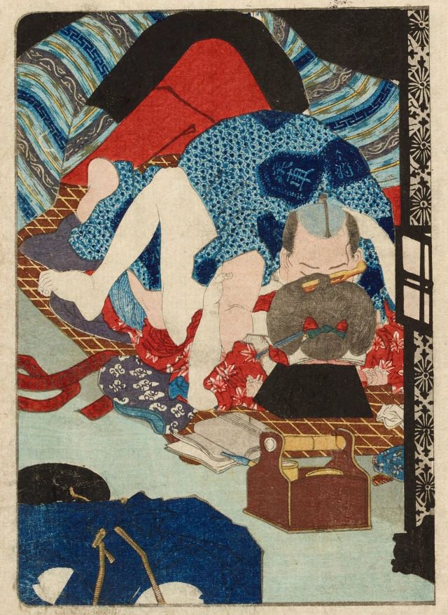 【図】腰を使う男。(『恋のやつふぢ』歌川国貞、天保期、国際日本文化研究センター蔵)