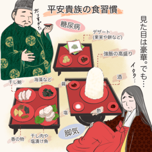 このように塩分が高めでお酒も糖度の高い濁り酒だったため、平安貴族は脚気や糖尿病になりやすかったんですって。