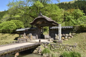一乗谷朝倉氏遺跡(福井県福井市安波賀中島町)に残る唐門。江戸時代に再建された唐破風造りの屋根が豪壮な雰囲気を伝える。遺跡内では屋敷跡だけでなく、近年の調査により発掘された庭園跡も目にすることができる。