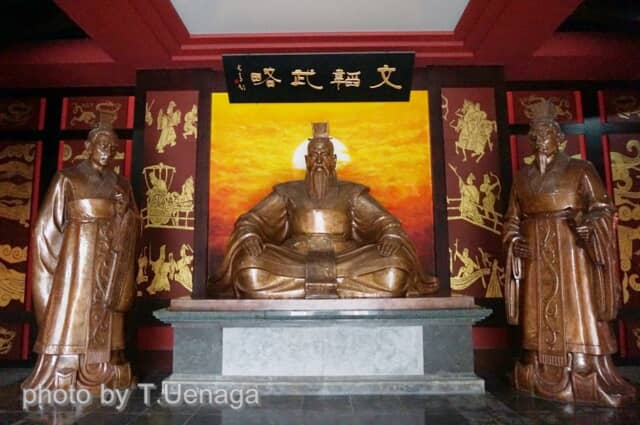 父・曹操(中央)、兄・曹丕(右)とともに「三曹」として評価される曹植の像。河南省亳州にて。(撮影/上永哲矢)