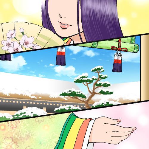 定子が「少納言よ。香炉峰の雪はいかがかしら」と尋ねたところ、清少納言は格子を上げさせて、御簾を高く巻き上げた。