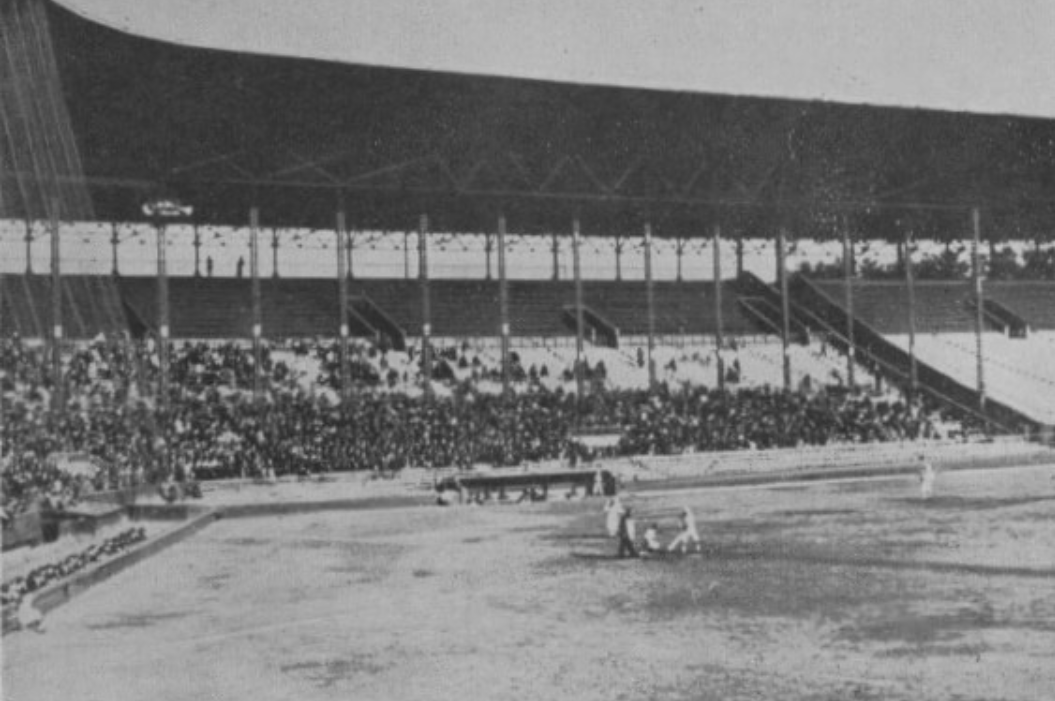 戦前にあった大鉄傘と内野席。大鉄傘は金属供出で失われた。