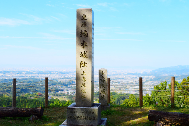 平野将監入道が城将を務め、楠木正季(楠木正成の弟)らとともに鎌倉幕府の阿蘇治時・長崎高貞・結城親光らと戦った上赤坂城址。