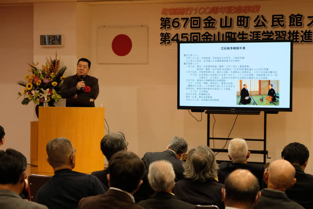 その金山町の町制施行100周年を記念して、最上地域史研究家の三浦和枝氏と著名な歴史小説家である伊東潤氏が町に招かれ、地域にまつわる歴史を振り返る講演が行われた。