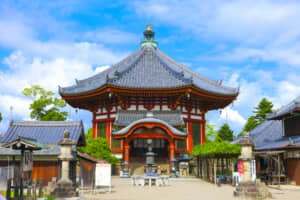 奈良県奈良市にある興福寺南円堂。藤原冬嗣の創建とされ、藤原氏の氏寺として知られる。藤原教通が関白の頃、造営着手の財源を確保しようとしたところ、後三条天皇に拒否された逸話がある(『愚管抄』)。現在の建物は江戸時代に再建されたもの。