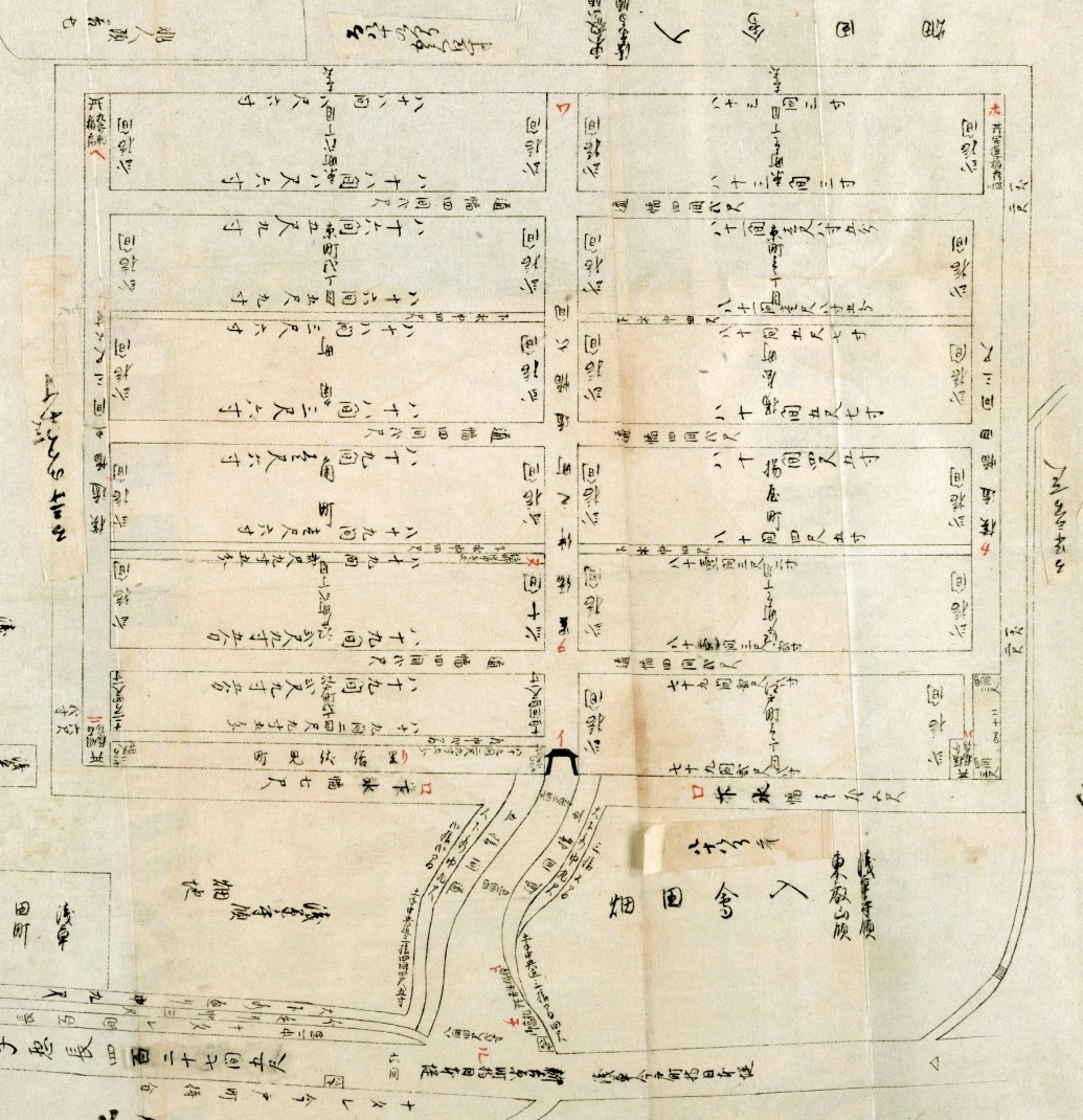 遊廓の構造を描いた絵図。広さ約2万800坪は東京ドーム約2個分。人口は約1万人だった。国立国会図書館蔵