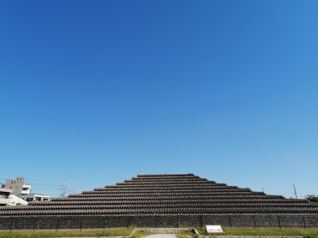 家原寺の東には行基が築いた土塔(どとう)がある。土と瓦を積み上げた十三重の仏塔で、瓦には一枚ごとに築造に携わった人々の名が記されていた。民衆による民衆のための祈りの塔なのだが、第一印象は日本のピラミッド。無数の瓦が陽の下で輝く姿のインパクトは絶大だ。