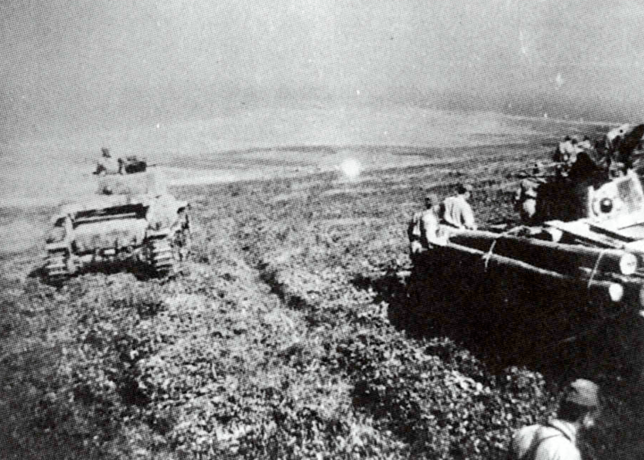 占守島の戦いで進軍する日本軍の戦車部隊。