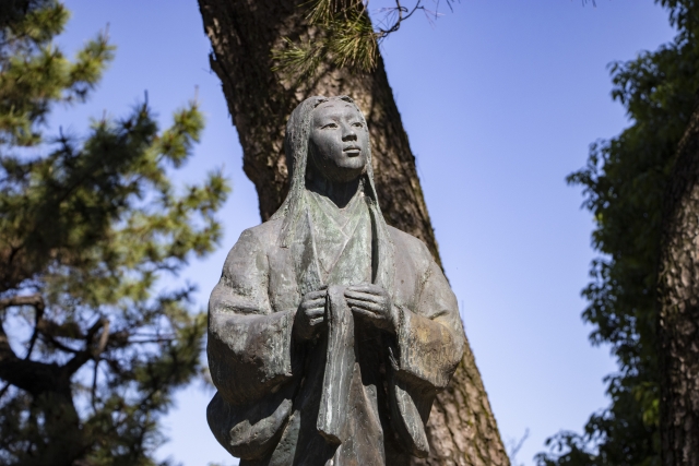 信長の居城であった清洲城に立つ「濃姫」の銅像
