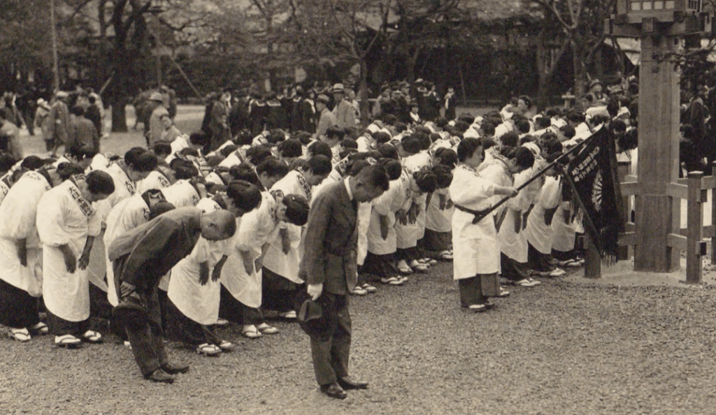 そもそも国防婦人会の始まりは、昭和7年(1932)まで遡る。昭和6年(1931)に満州事変、そして昭和7年(1932)に上海事変が勃発すると、大阪港付近に暮らす主婦らが協力し、出征兵士や、召集に従って帰郷する若者らを茶などでもてなしたことが原点となっている。そうして発足した「大阪国防婦人会」は、やがてそれに目をつけた軍に活動を後押しされるようになり、愛国婦人会、大日本連合婦人会等と統合されて「大日本国防婦人会」として全国に拡大した。