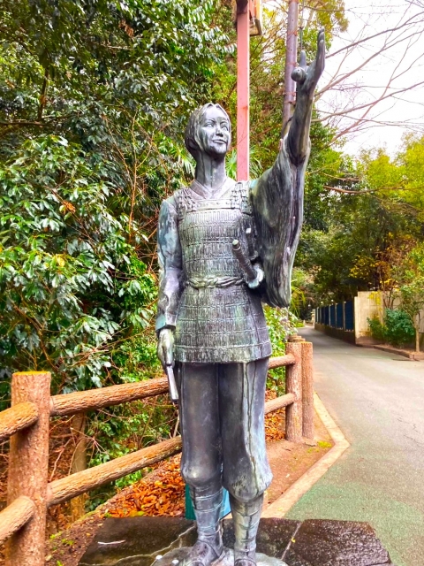 大山祇神社の大祝職(大宮司)の娘として生まれた鶴姫。大山祇神社(大三島宮)に立つ鶴姫像