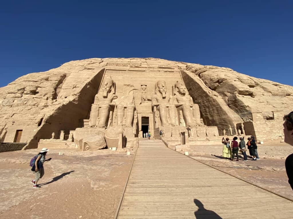 そして何よりも自分の名前を残すべきカンバスとして、国内外に巨大な神殿を幾つも建造・増改築した。テーベのカルナク神殿の列柱室、ルクソール神殿の塔門と中庭、ラメセウム(ラメセス2世葬祭殿)、そして何といってもアスワン南方にある巨大な岩を掘り込んだアブシンベル神殿(写真2)が有名だろう。