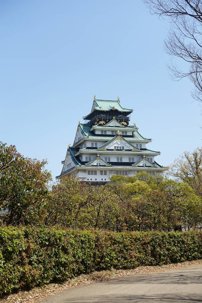 大坂城西の丸から望んだ天守。年間260万以上の人が訪れる人気の観光スポットだ。西の丸からは、そんな喧噪が信じられないくらい静かに天守を眺めることができる。