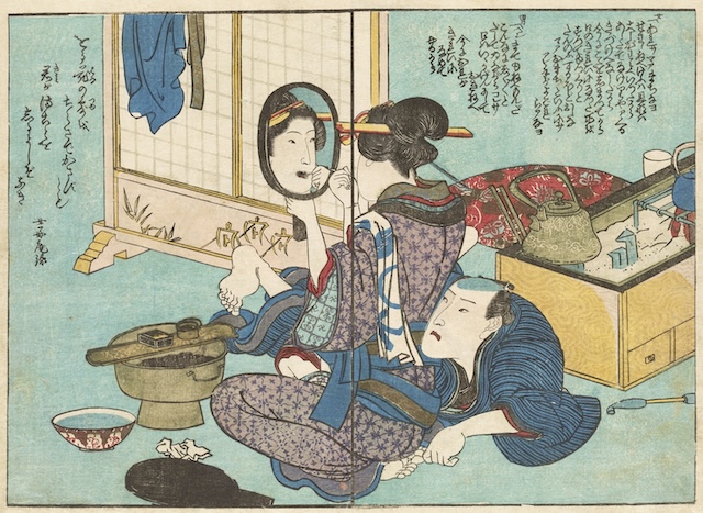 お歯黒をする女。『花結色陰吉』(歌川国芳/天保8年)、国際日本文化研究センター蔵