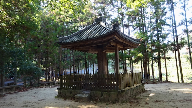 ちなみに、実は似た建築を所有している寺院が同じ奈良県にあります。天理市の長岳寺の五智堂(ごちどう)がそれで、こちらも壁に当たるものがなく、中心の太い柱が屋根を支えています。ただ、五智堂のほうは四隅も柱が建っているので、目にした時の印象は大幅に異なります。端的に言うと、五智堂はすごく安定感があって、「普通の建物」に感じます。一方で、傘堂はかわいいお化けのようなところがあります。菩提を弔うために建てられたものをお化けにたとえるのはどうかと思いますが……わざわざ見に行ってよかったと思える素晴らしい建築です。