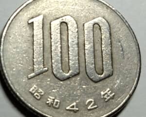 1967年から使われ続けて摩耗した100円硬貨(部分)