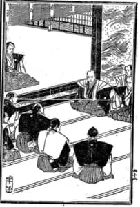 『尊号美談』(国立国会図書館蔵)に描かれた、朝廷への対応について幕閣が話し合っている様子。1792(寛政4)年に度重なる松平定信の反対にあった末に天皇は尊号を断念。翌1793(寛政5)年、幕府に対峙した公卿は処罰された。
