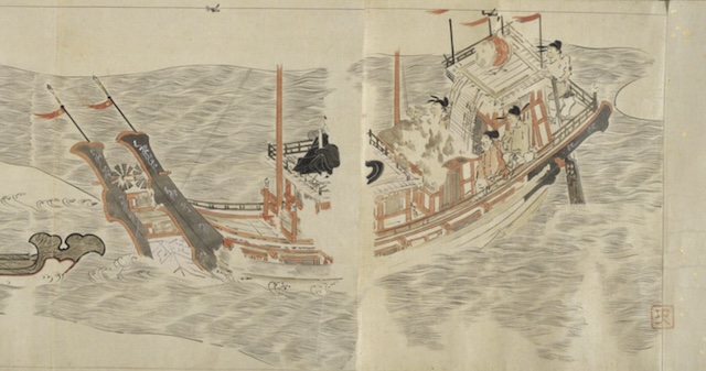 この頃に使われていた船に関しては、絵巻物などを見てどの様な物だったかを探るしかない。それは実物が出土していないからである。この頃は船の廃材を別の用途に再利用するのが普通であったから、船の形を残したものがほぼ残されていなかったからだ。