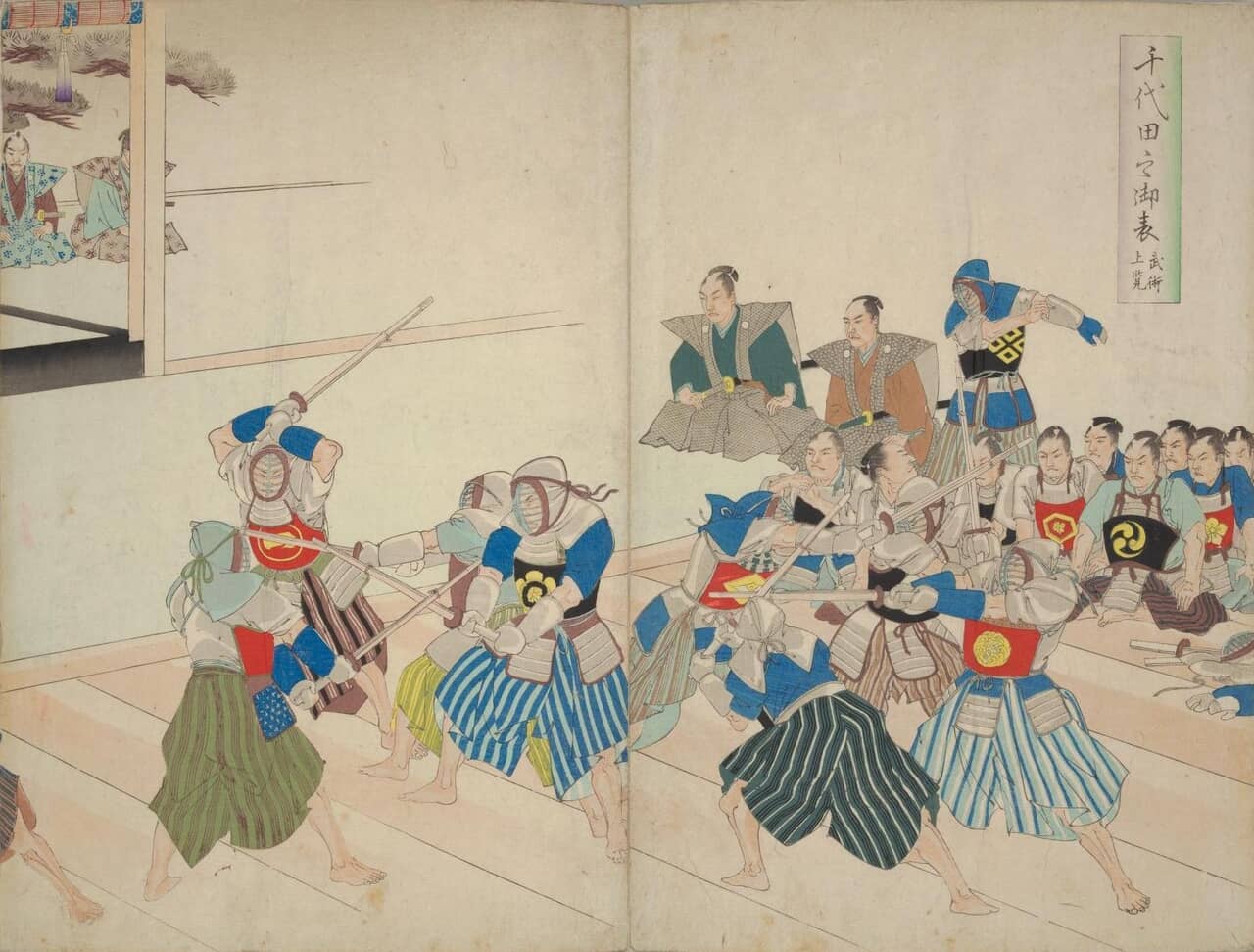 大正13年(1924)5月、京都の大日本武徳会の道場で、剣道側と銃剣術側からそれぞれ19名の選手が出場して、剣道対銃剣術の異種対抗戦がおこなわれた。