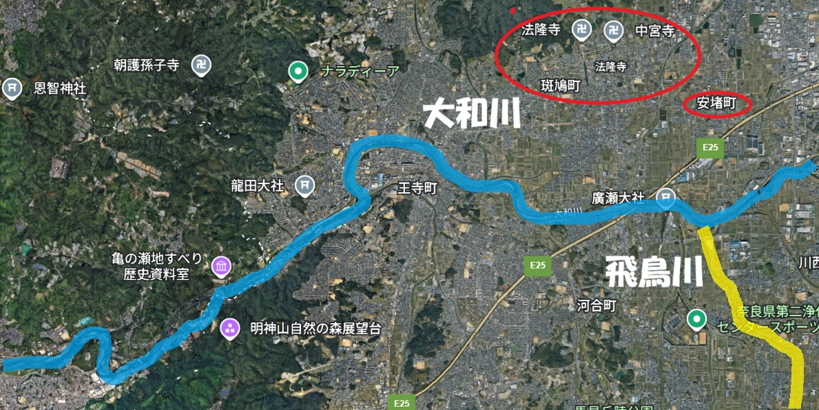河内湾と直結し飛鳥川に分岐する水路を抑える斑鳩は最重要戦略拠点となるのがわかる