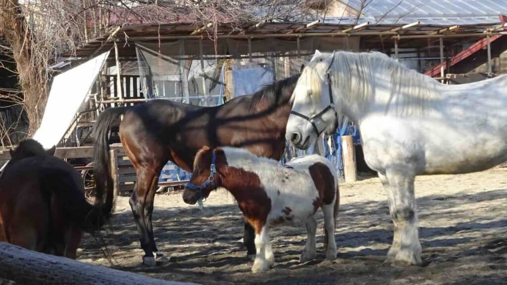 ポニーや大型の「ばん馬」、在来馬の「木曽馬」などが飼育されている