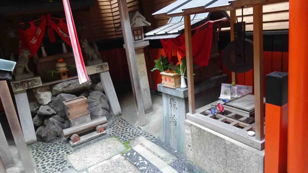 鉄輪の井(右)と命婦稲荷社
