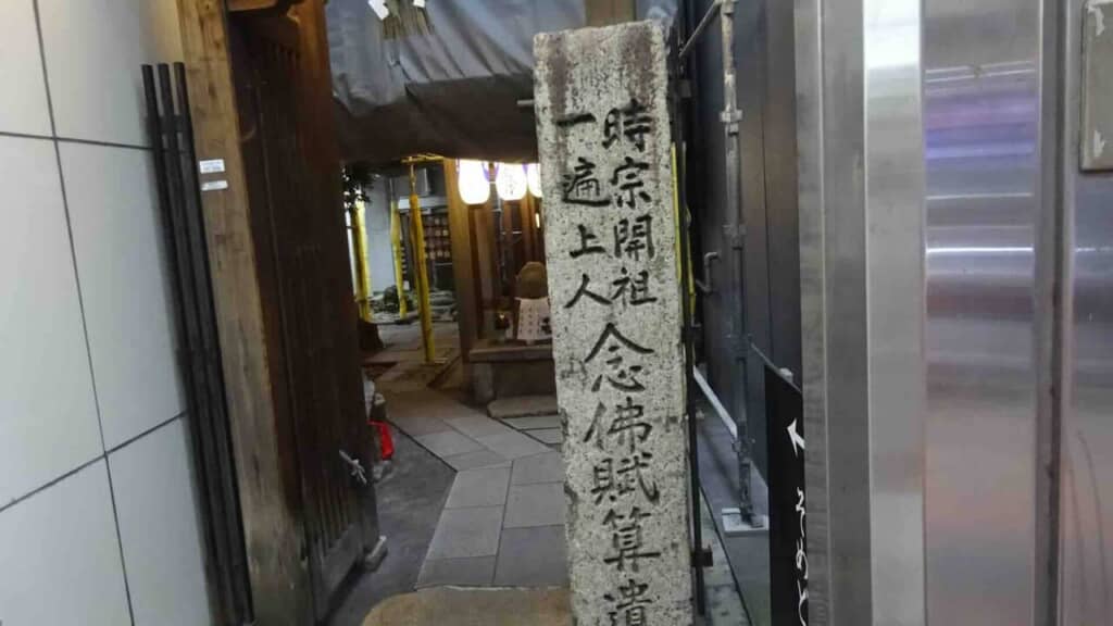 小さいお社もお堂も全国にあるでしょうが、このお堂、日本史の重要人物と関わりがあります。時宗の開祖一遍(いっぺん)はここにあったお堂に入って、賦算(ふさん)や踊り念仏を行ったとされています。賦算というのは「南無阿弥陀仏」の文字が入ってるお札を配っていくこと。このエピソード、聞いたことがある方も多いのではないでしょうか。時宗にとって超重要な史跡なわけです。