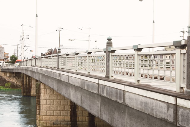 清須の五条橋御城橋として使われた橋で、織田信長が馬に跨り、渡ったとされる。