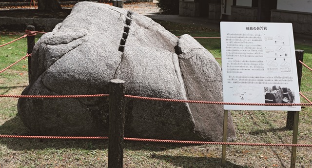 篠島の矢穴石名古屋城築城の際、港から運ばれた石。